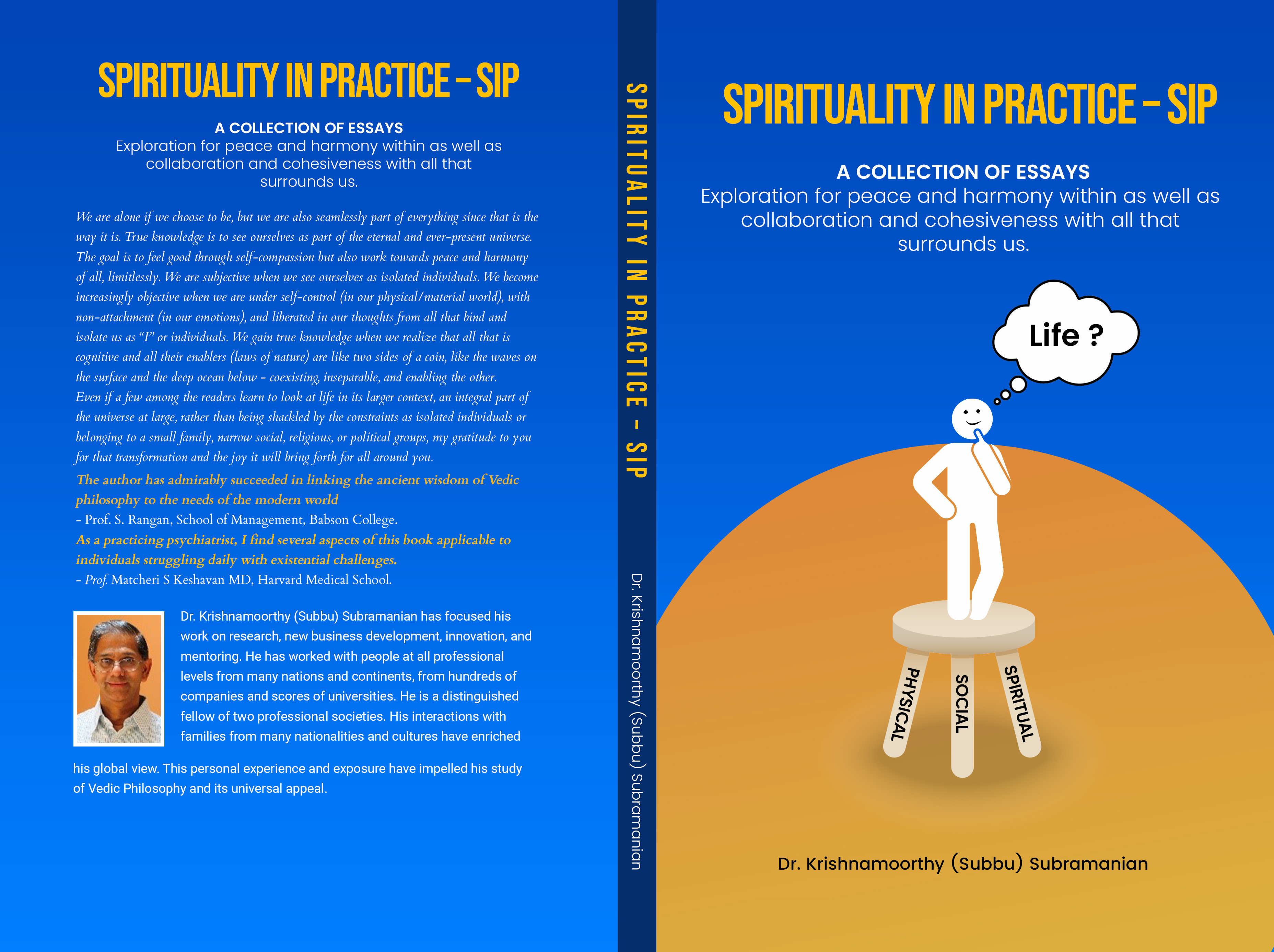 Finally, a word of thanks to all the readers, especially those from the younger generation. You are the reason for whom this book is written. Even if a few among you learn to look at life in its larger context, an integral part of the universe at large, rather than being shackled by the limitations and constraints as isolated individuals or belonging to a small family, narrow social, religious, or political groups, my gratitude to you for that transformation and the joy it will bring forth for all around you.