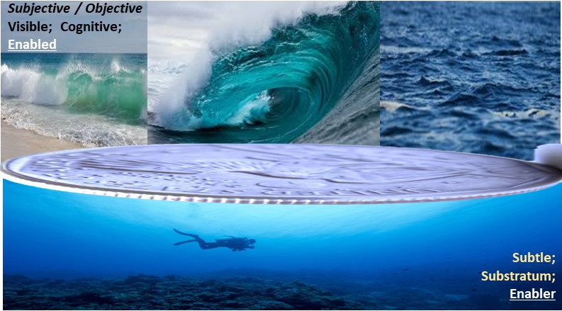 Spirituality is the ability, desire and will to seek and identify with the common driving force (Spirit) across everything. From such a point of view or alignment, you can see the common framework for everything and why they are like that within you and around you. This spiritual perspective gives you the ability to remain calm and peaceful (like the deep ocean), while things within and around us are turbulent (like the waves on the surface of the ocean)! This point of view is illustrated in the figure above.