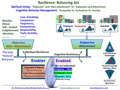 As humans we are the product of our mind and its connection (as well as response) to the world around us. The connectors (rope or guna) are Tranquility (sattva), Turbulence (rajas) and Inertial (tamas). The building blocks of these connectors are Knowledge, Bias and Ignorance. They co-exist all the time. When Knowledge is dominant over Bias and Ignorance, we are Tranquil. When Bias is dominant over Knowledge and Ignorance, we are Turbulent. We feel agitated. We experience misery, pain and sorrow. When we are turbulent, sometimes we also experience unbridled happiness, which in the end leads to more “I” and “mine”. This devolves into more pain and suffering. When Ignorance is dominant and aided by Bias, with no Knowledge in sight, we suffer from grief! https://sipractce.com/2025/05/11/resilience/